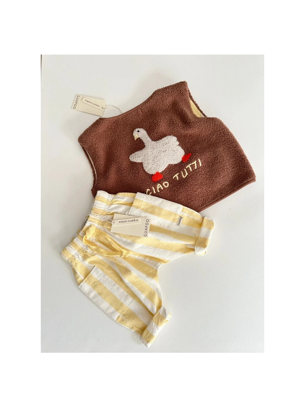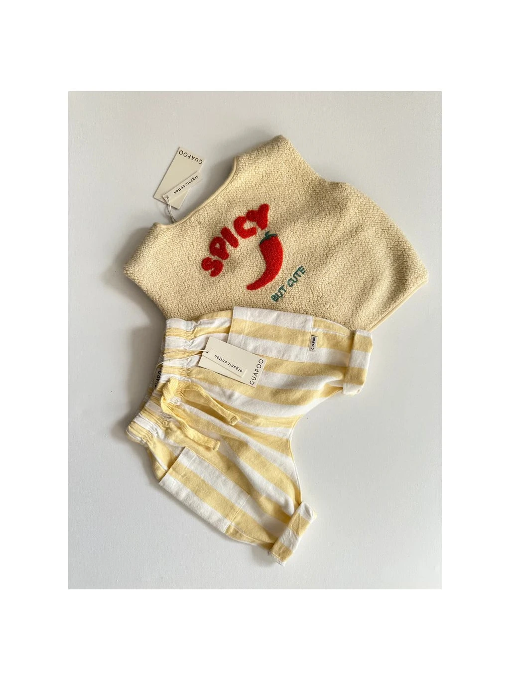 Jednoduché, kvalitné, unisex a nadčasové. Presne také je oblečenie nemeckej minimalistickej značky GUAPOO. Vytvorila ju Aljona, mama dvoch detí, ktoré ju k tvorbe vlastnej značky inšpirovali. Svoju prvú kolekciu predstavila v roku 2016. Značka GUAPOO je navrhovaná v Nemecku. Vyrobená je ručne a eticky starostlivo vybraným rodinným podnikom v Indii. Vďaka jemným farbám a jednoduchému dizajnu ponúka GUAPOO nespočetné možnosti kombinácií pre deti od 0 do 7 rokov. Sme jedným z prvých e-shopov vôbec, ktorému sa podarilo začať spoluprácu s touto jedinečnou značkou a tešíme sa, že ste si ju u nás obľúbili a stala sa naším bestsellerom.