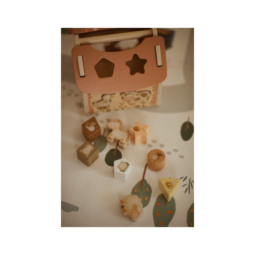 Pri hre si dieťa prirodzene rozvíja jemnú motoriku, koordináciu ruka–oko, zrakové vnímanie a logické myslenie. Vkladanie tvarov podporuje sústredenie, trpezlivosť a samostatnosť, zatiaľ čo jemné ilustrácie a prírodné farby upokojujú a podnecujú fantáziu.