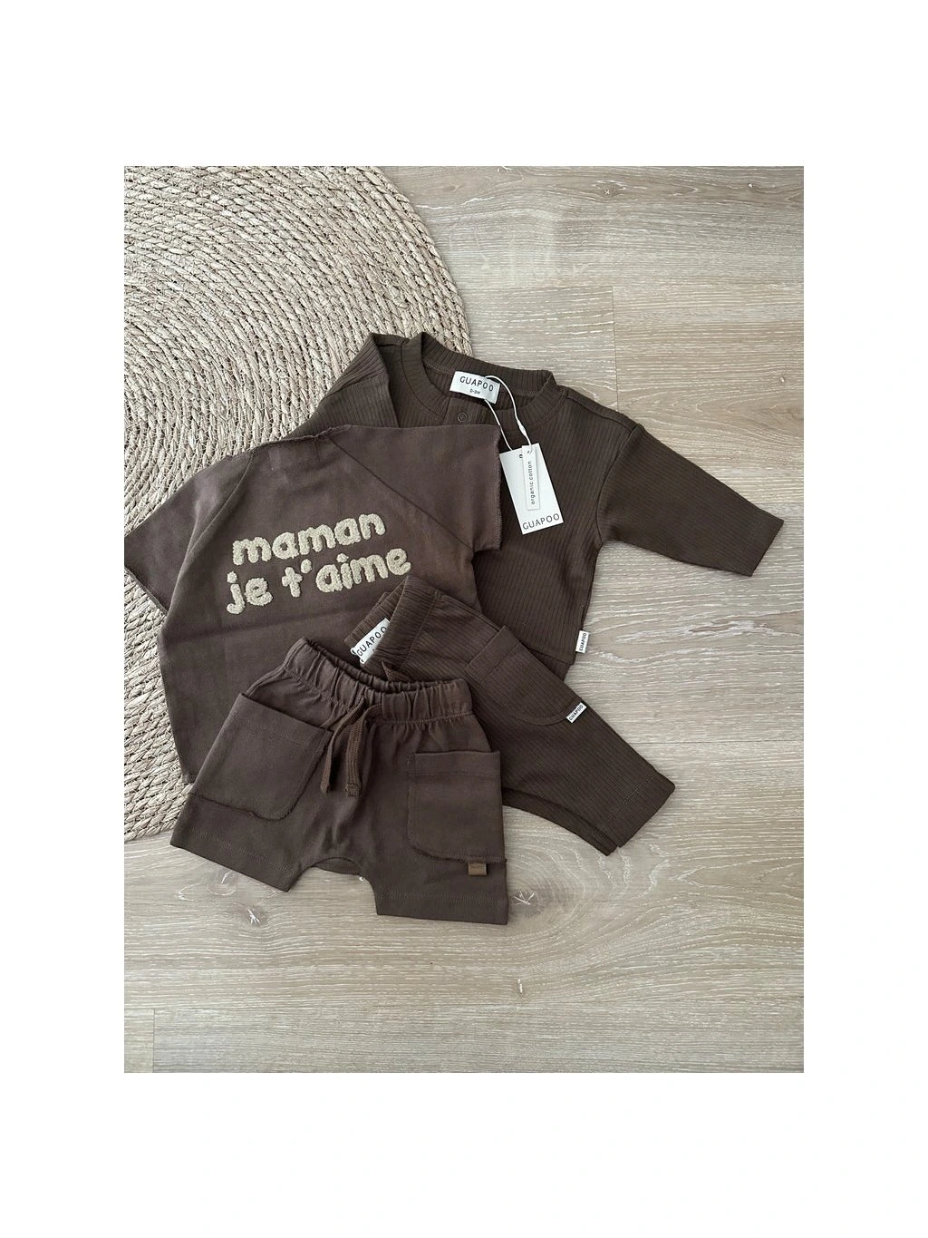 Jednoduché, kvalitné, unisex a nadčasové. Presne také je oblečenie nemeckej minimalistickej značky GUAPOO. Vytvorila ju Aljona, mama dvoch detí, ktoré ju k tvorbe vlastnej značky inšpirovali. Svoju prvú kolekciu predstavila v roku 2016. Značka GUAPOO je navrhovaná v Nemecku. Vyrobená je ručne a eticky starostlivo vybraným rodinným podnikom v Indii. Vďaka jemným farbám a jednoduchému dizajnu ponúka GUAPOO nespočetné možnosti kombinácií pre deti od 0 do 7 rokov. Sme jedným z prvých e-shopov vôbec, ktorému sa podarilo začať spoluprácu s touto jedinečnou značkou a tešíme sa, že ste si ju u nás obľúbili a stala sa naším bestsellerom.